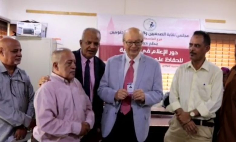 وخلال حفل التسليم الذي حضره عدد من الصحفيين والاعلاميين ثمن النقيب عيدروس باحشوان جهود الباحث جيرارد فيسبير في رصد الاوضاع في الجنوب ونقل الصورة الحقيقية للشعب الفرنسي والعالم لما يعتمل على مختلف المستويات في عدن ومناطق الجنوب ، شاكرا له الزيارة الثانية لمقر النقابة خلال ٢٤ ساعة من اللقاء مع نقيبها وعدد من مسؤوليها.