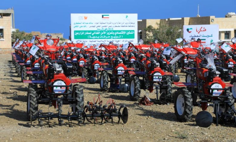 في إطار توجيهات معالي وزير الزراعة والري والثروة السمكية اللواء سالم عبدالله السقطري، وتنفيذًا لجهود الوزارة في دعم القطاع الزراعي بمحافظة سقطرى، دشّنت وزارة الزراعة والري، بالتنسيق مع السلطة المحلية، وبتمويل كريم من الهيئة الخيرية الإسلامية العالمية بدولة الكويت، مشروع توزيع 100 حراثة يدوية لصغار المزارعين، ضمن حملة “الكويت إلى جانبكم”.