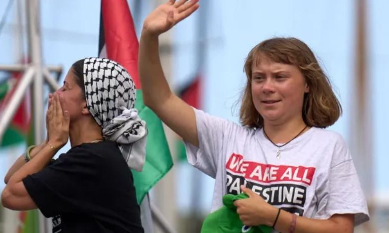 وكانت جريتا ثونبرج، إحدى أبرز الشخصيات على متن أسطول الصمود، التي أُجبرت على الركوع على الخرسانة أمام العلم الإسرائيلي، وكانت محاطة باستمرار بأعلام إسرائيلية أخرى أثناء احتجازها، بحسب شبكة “سي إن إن”.