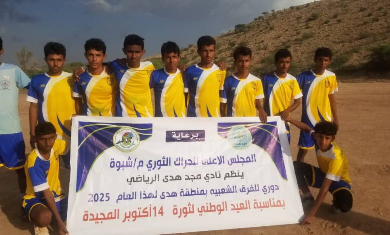 على أرض ملعب العضبة الترابي ووسط أجواء رياضية مع زخات المطر احتصن عصر اليوم الأربعاء ملعب العضبة لقاء جمع فريقا النصر والعين ضمن بطولة دوري ثورة 14 أكتوبر المجيدة برعاية كريمة من قبل المجلس الأعلى للحراك الثوري بشبوة والذي ينظمها نادي المجد الرياضي منطقة هدى. بمديرية حبان ، بنظام خروج المغلوب من مره واحدة حيث أقصى فريق النصر نظيرة العين بهدفين نظيفين ليتأهل للدور الثاني من البطولة فيما غادر العين خارج أسوار هذه البطولة