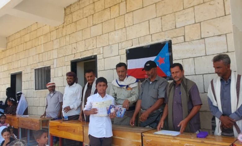 مدرسة فتح الجانح بالمحفد تقيم حفلاً تڪريمياً لطلابها المتفوقين وتشهد رفع العلم الجنوبي وترديد النشيد الوطني الجنوبي