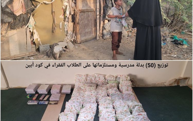 توزيع (50) بدلة مدرسية ومستلزماتها على الطلاب الفقراء في كود أبين