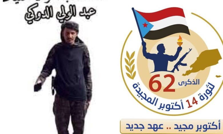 رفع قائد قوات التعبئة العامة والاحتياط في الجنوب، النقيب عبدالولي الدوكي القماري أسمى التهاني إلى الرئيس القائد عيدروس قاسم الزُبيدي، رئيس المجلس، وإلى شعب الجنوب، بمناسبة حلول الذكرى الـ62 لثورة 14 أكتوبر المجيدة،.