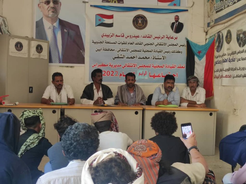 القيادة المحلية لانتقالي مكيراس تعقد اجتماعها الدوري وتجدد الدعوة لتحرير المديرية من المليشيات الحوثية
