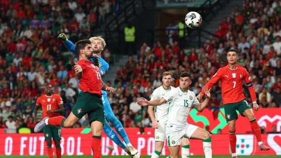 فازت البرتغال مساء السبت بشق الأنفس على ضيفتها إيرلندا بهدف متأخر من روبن نيفيز لاعب الهلال السعودي، لتقترب خطوة من التأهل إلى كأس العالم 2026 التي ستقام في الولايات المتحدة وكندا والمكسيك.