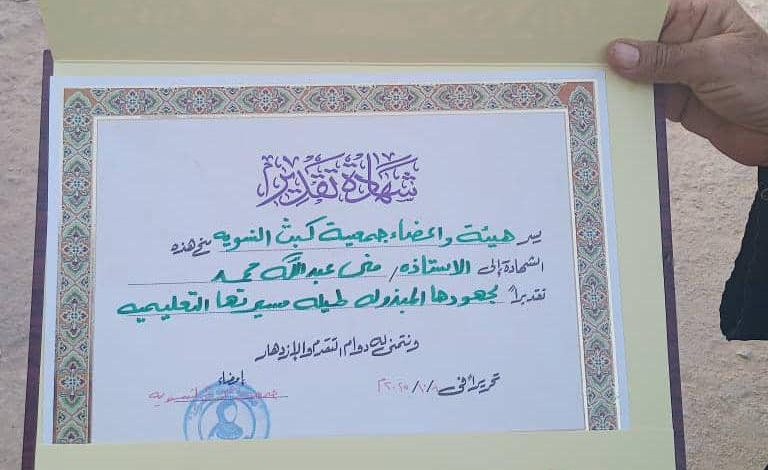 ضمن سلسلة النشاطات التي تقوم بها جمعية كبث، أقيم حفل تكريم للمعلمة الوحيدة داخل المنطقة، الأستاذة منى عبدالله محمد عبشل السرحي، التي انضمت لسلك التعليم منذ عام 1989 بمدرسة باتيس، ومع تأسيس مدرسة كبث في عام 1995، انتقلت لتكون شعلة العلم التي تنير المنطقة بعلمها وقيمها.