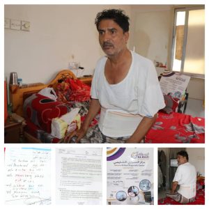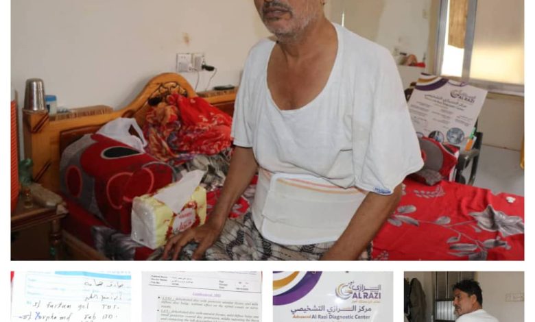 وقد أوصى الطبيب المعالج بضرورة الراحة التامة والعلاج المستمر لمدة شهر، وفي حال لم يطرأ تحسن على حالته، فإنه سيحتاج لإجراء عملية جراحية عاجلة بتكاليف مرتفعة تتجاوز قدرته المادية.