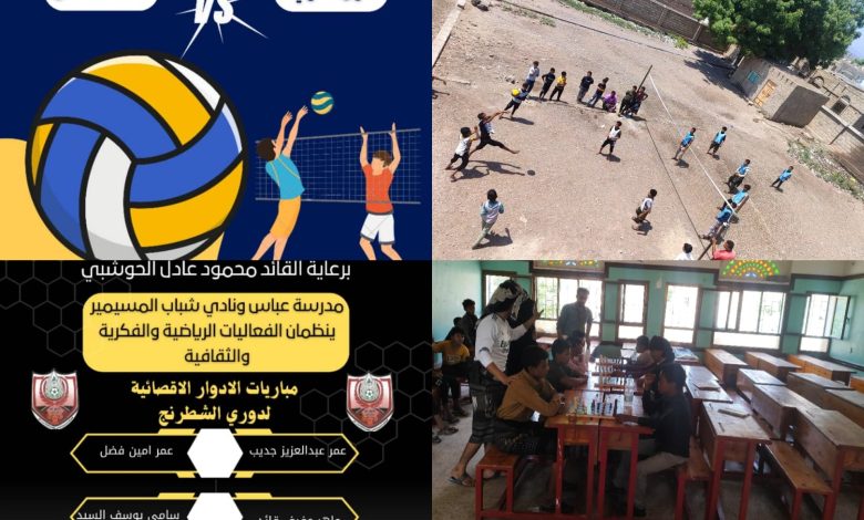 دخلت منافسات بطولة الشطرنج في مدرسة الشهيد عباس بالمسيمير محافظة لحج أدوارها الإقصائية الحاسمة، حيث تأهل إلى نصف النهائي كلا من سلطان مندش وعفيف وائل وعمر عبدالعزيز وماهر عفيف وحسين قحطان، وسيلتقي اليوم الأحد في المواجهة الأولى عمر جديب وسلطان مدهش وفي المواجهة الثانية ماهر عفيف وعزام عبدالغني، وفي الثالثة يتواجه وائل عفيف وحسني العبادي.