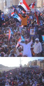 ورددوا الجماهير المحتشدة الشعارات التي تؤكد تمسكهم بالهوية الجنوبية ورفضهم لأي وصاية خارجية على حضرموت، إلى جانب التأكيد على دعمهم لقوات النخبة الحضرمية والمضي نحو استعادة دولة الجنوب المستقلة.