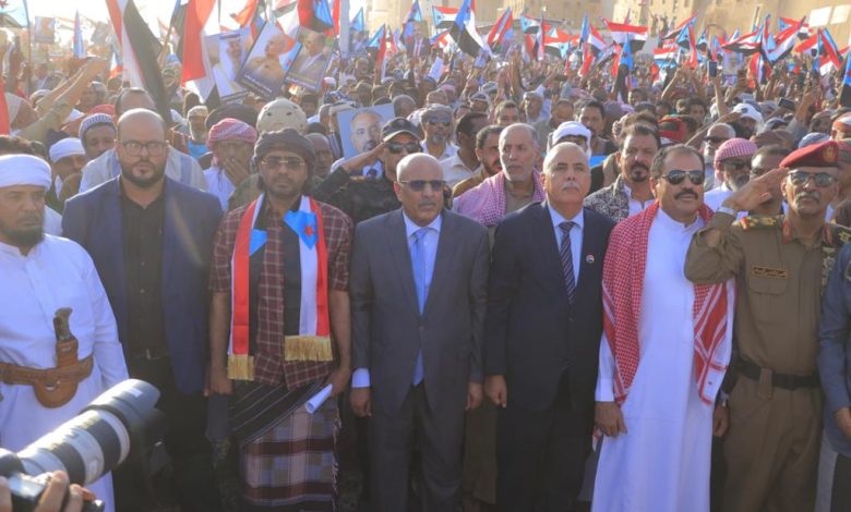 وأضاف: «نُجدد العهد والوفاء والتفويض لقيادتنا السياسية ممثلة بالرئيس القائد عيدروس بن قاسم الزبيدي، ونؤكد أننا على العهد ثابتون وصامدون. هذا الشعب الجبار هو المخزون الاستراتيجي الذي لا ينضب، ومحزم القوة الذي لا ينفد. امضوا بثقة في سبيل تحقيق أهداف ثورتنا وإعلان دولتنا الجنوبية الفيدرالية، فشعب الجنوب معكم في السلم أو الحرب أو التفاوض».
