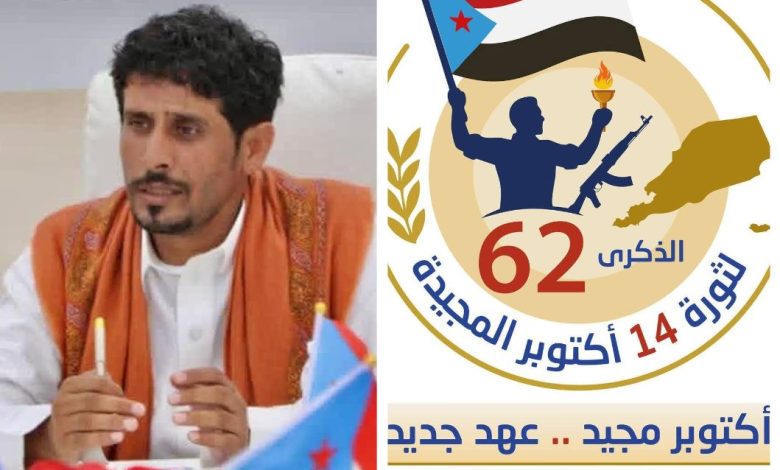 وقال بلحاف: من بوابة الجنوب الشرقية محافظة المهرة يبعث اتحاد شباب الغد أصدق التهاني لشعبنا الجنوبي بمناسبة الذكرى الـ62 لثورة 14 أكتوبر المجيدة، الثورة التي كسرت قيود الاستعمار وأشعلت فجر الحرية.