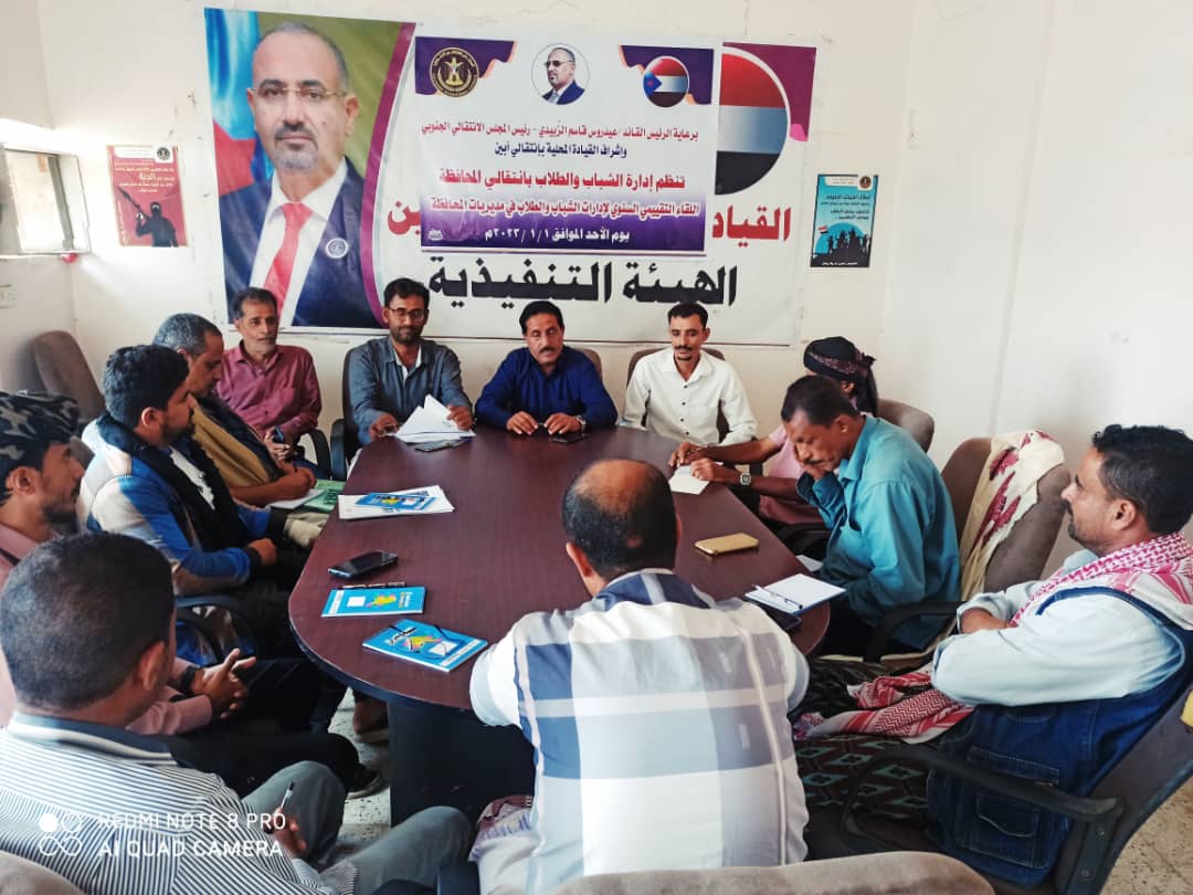 من جانبه أكد مدير الإدارة التنظيمية الاستاذ عبدالله برهوت على أهمية تعزيز الدور التوعوي بين أوساط الشباب للحفاظ على القيم والأخلاق الإسلامية، وتوجيه السلوك بين الشباب وصولاً بها إلى المساهمة الإيجابية في التنمية الشاملة، مشيرا إلى أهمية تعزيز العمل المؤسسي والتنظيمي في إطار كافة هيئات المجلس ، بعيدا عن التخبط والعشوائية التي لا تخدم توجهات المجلس الانتقالي الجنوبي.