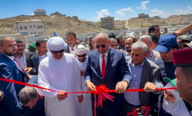 الرئيس الزُبيدي يزور مديرية الشعيب ويفتتح مجمّع الشيخ محمد بن زايد التعليمي النموذجي بمنطقة القزعة