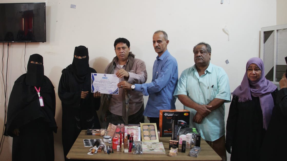 جمعية شباب الحمراء بلحج تسلم أدوات المهنة للمشاركات في مشروع “معاً لأجلك أنتِ”