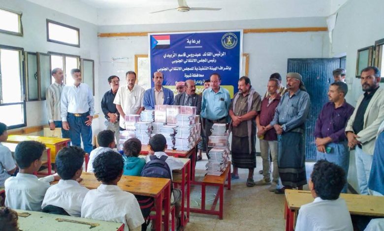انتقالي شبوة يدشن توزيع الكتاب المدرسي لعدد من مدارس المحافظة