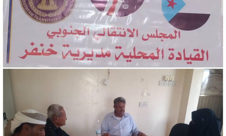 ناقشت مديرة إدارة المرأة والطفل بالهيئة التنفيذية للقيادة المحلية بالمجلس الانتقالي الجنوبي بمحافظة أبين الاستاذة أنجيلا عبادي، مع رئيس الهيئة التنفيذية للقيادة المحلية للمجلس الانتقالي بمديرية خنفر، الاستاذ صالح ناجي بن عطاف، اليوم الاحد، بمقر المجلس بجعار، وضع اللجان المحلية بالمديرية.