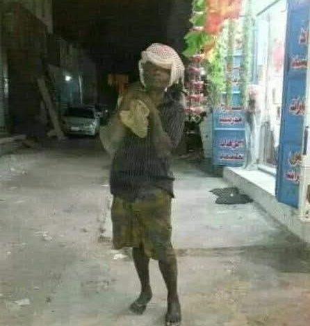 جاء الى جعار من حيث لا ندري في نهاية السبعينيات أو بداية الثمانينات تقريبا ، وكان يجلس في قلب سوق جعار بجانب استريو الأهرام الذي كان يقع حينها أسفل عمارة بن عسكر أمام دكان الشتار ، كانت هناك برحة ينام فيها ، وجسمه كله مطلي بالهرد ، ويقضي كثيرا من اوقاته في فرزة الدرجاج ، ثم اتخذ من دكة عمارة العوادي ، ودكة عمارة الجعدبي في شارع الحدادين ( شارع الذهب حاليا ) مقاما شبه دائم له ، وكان يلف شوارع سوق جعار طوال الليل الى الفجر وبعدها يختفي قليلا ثم يعود الى موقعه في سوق الحدادين ، ويفرش عددا من الكراتين ، وينام ملتحفا كشيدته الباذخة الاتساخ .