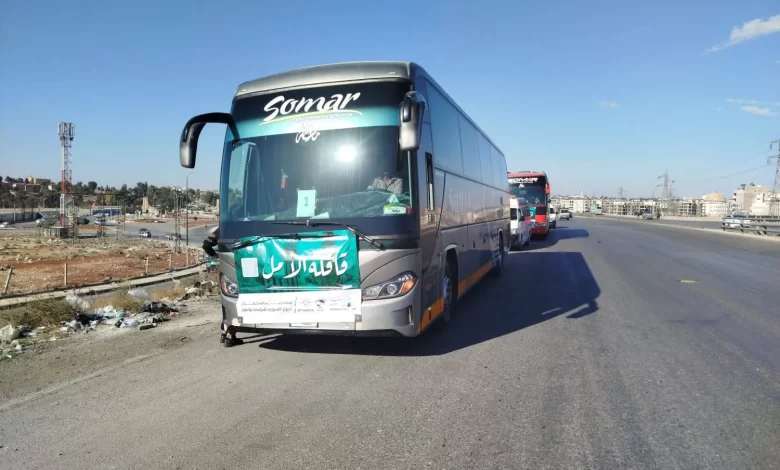 من جانبها، بثت وسائل الإعلام السورية الرسمية صوراً لحافلات القافلة في أثناء انطلاقها من حلب باتجاه الحسكة، السبت، برفقة فرق طبية وسيارات إسعاف تتبع وزارة الصحة السورية، فيما أفادت تقارير إعلامية بوجود ترتيبات لإخراج دفعات أخرى لاحقاً.