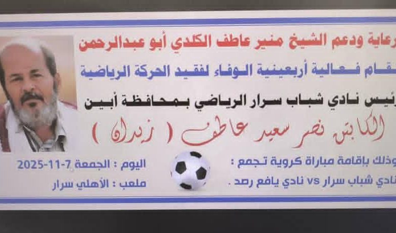 تحت إشراف النادي.. الجمعة 7نوفمبر سرار يافع تلبس ثوب الوفاء في اربعينية فقيدها الراحل رئيس نادي شباب سرار نصر سعيد عاطف “زيدان”