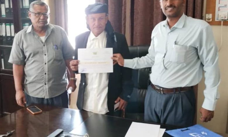 مدير عام مكتب الأشغال بشبوة يكرم نائب مدير مكتب الأشغال بمديرية نصاب نظير جهوده في الأداء
