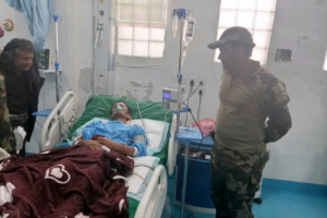 العميد الحارثي يزور جرحى حادثة الاستهداف بالطيران المسير الحـ ـوثي بجبهة مرخة العليا