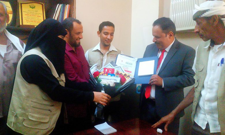 عمال مكتب الصناعة والتجارة بلحج يكرمون مدير المكتب عبدالرب الجعفري تقديرًا لجهوده المتميزة