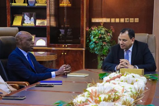 رحب سالم السقطري، وزير الزراعة والري والثروة السمكية، بالدكتور آدم ياو، القائم بأعمال الممثل المقيم لمنظمة الأغذية والزراعة “فاو”، اليوم في العاصمة عدن.