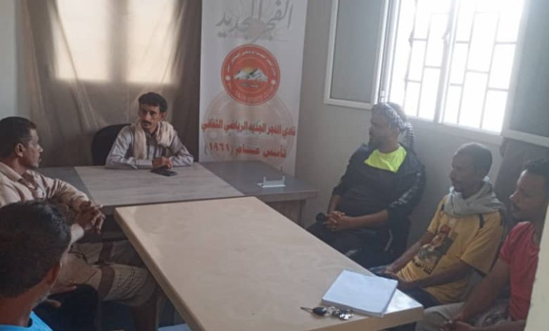 رئيس نادي الفجر الجديد يجتمع برؤساء الالعاب بالنادي للاطلاع على احتياجاتهم