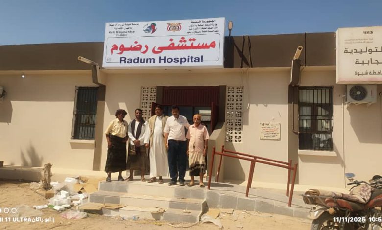 برعاية المحافظ ابن الوزير مدير عام رضوم يشرف على تدشين المرحلة الثانية من التجهيزات الطبية بمستشفى رضوم الممول من مؤسسة خليفة