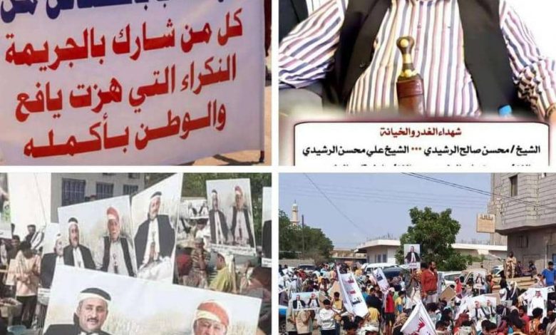 في السياق ذاته أكدت الأوساط الشعبية والاجتماعية والقبلية والتجارية من مناصرين آل الرشيدي في داخل الوطن وخارجة إن المماطلة في في حسم قضايا القتل لا تفيد إلا تشجيع المجرمين والقتله على مواصلة سلوكهم الإجرامي وتكون سبباً في تعميق الصراعات المناطقية والقبلية،ويجب اليوم أن ينتصر القضاء لمظلومية الشهداء المغدور بهم والإنتصار للعدالة بأعتبار أن الحادثة تتنافى مع كافة القيم الأخلاقية والمجتمعية والدينية.
