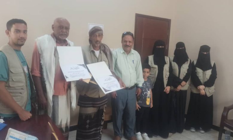 عبده حزام وصلاح الدوخه بشهائد تقديرية وسط حضور ملفت للنظر من قبل عمال وعاملات المكتب والسلطة المحلية وعدد من الإعلاميين وذلك نظير جهودهما الجبارة وعطائهما الدائم الذي لا ينضب ابدا خلال فترة 40 عاما وما بذلوه من جهد ومثابرة وتفاني وعطاء والذي لازال حتى وقتنا الحاضر وقد كان هولاء العاملان النموذج الذي يحتذى به من حيث الالتزام بالقوانين والانضباط بالعمل والامانة والمصداقية والتحلي بالاخلاق الحميدة ومن هذا المنطلق استحقا التكريم .