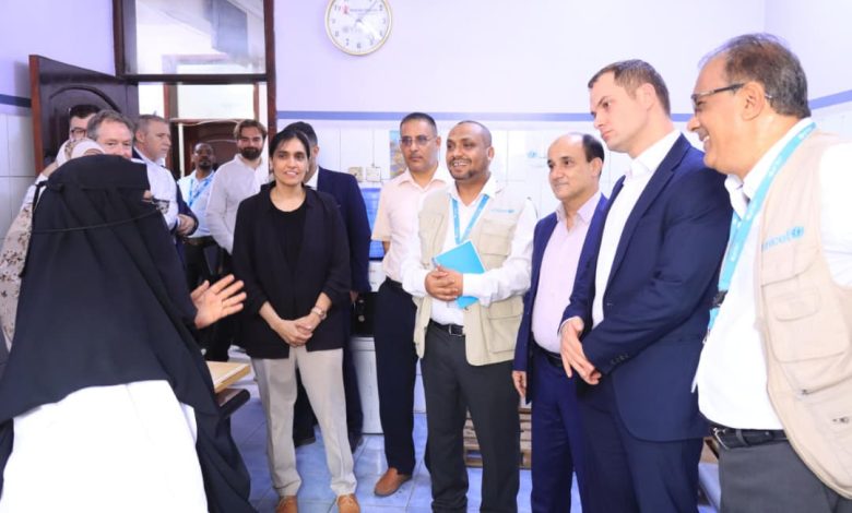 وفد رفيع من الخارجية البريطانية واليونيسف يزور مجمع دار سعد الصحي للاطلاع على مستوى الخدمات الصحية بالمديرية