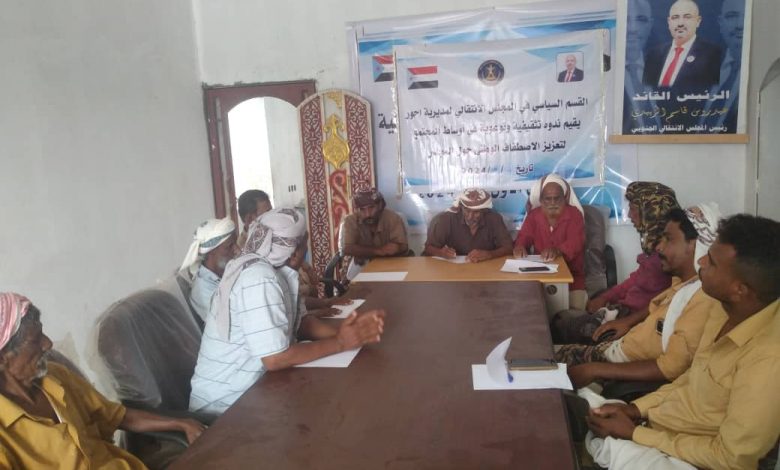 انتقالي أحور ينظم ندوة بعنوان “نشر الوعي السياسي والاصطفاف الجماهيري حول المجلس الانتقالي الجنوبي”