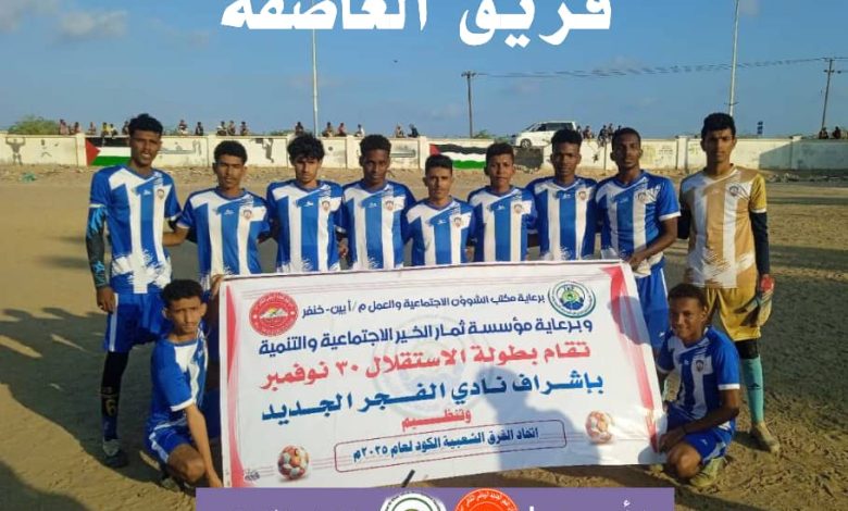 ريمونتادا مجنونه قادت العاصفة لفوز ثمين على جاره النش في دوري الاستقلال 30نوفمبر للفرق الشعبيه بالكود الذي ينظم برعاية مكتب الشوؤن الاجتماعية والعمل محافظة أبين وبرعاية مؤسسة ثمار الخير الاجتماعية والتنموية وبإشراف إدارة نادي الفجر الجديد واتحاد الفرق الشعبية بالكود خنفر
