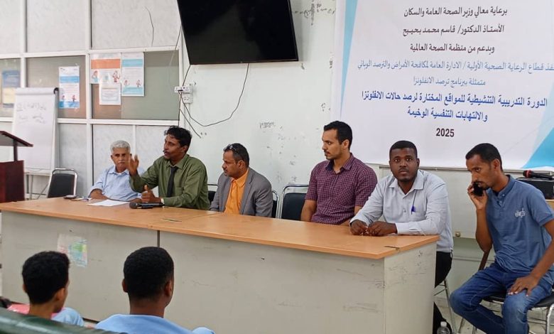 بدعم من منظمة الصحة العالمية تدشين الدورة التدريبية التنشيطية بهيئة مستشفى أبن سيناء بالمكلا حول ,, رصد حالات الأنفلونزا و الالتهابات التنفسية الوخيمة