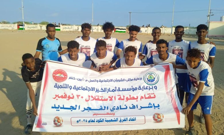 تغلب فريق الشلعة على جاره فريق الغرنعه بهدفين لهدف في دوري الاستقلال 30نوفمبر للفرق الشعبيه بالكود الذي ينظم برعاية مكتب الشوؤن الاجتماعية والعمل محافظة أبين وبرعاية مؤسسة ثمار الخير الاجتماعية والتنموية وبإشراف إدارة نادي الفجر الجديد وتنظيم إتحاد الفرق الشعبية بالكود خنفر