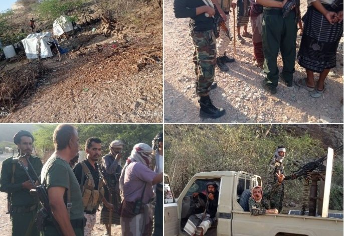 بتوجيهات مدير عام أمن أبين .. حملة أمنية ضد مواقع الافارقة بمنطقة عصران شرق مدينة المحفد