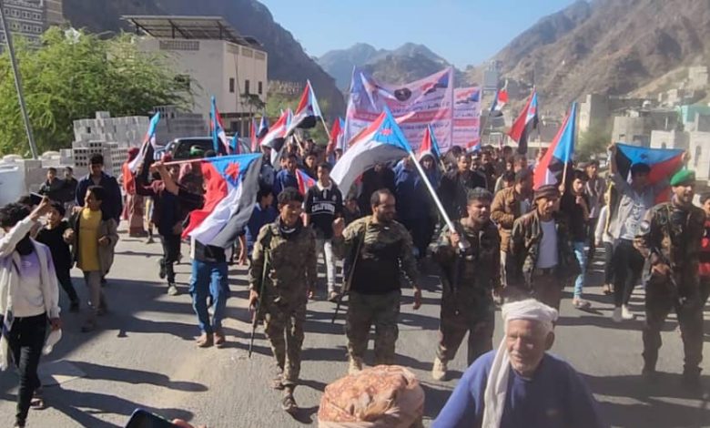 مسيرة حاشدة في يهر – يافع تأييدًا لانتصارات القوات الجنوبية في حضرموت والمهرة ومطالبة بدولة الجنوب.