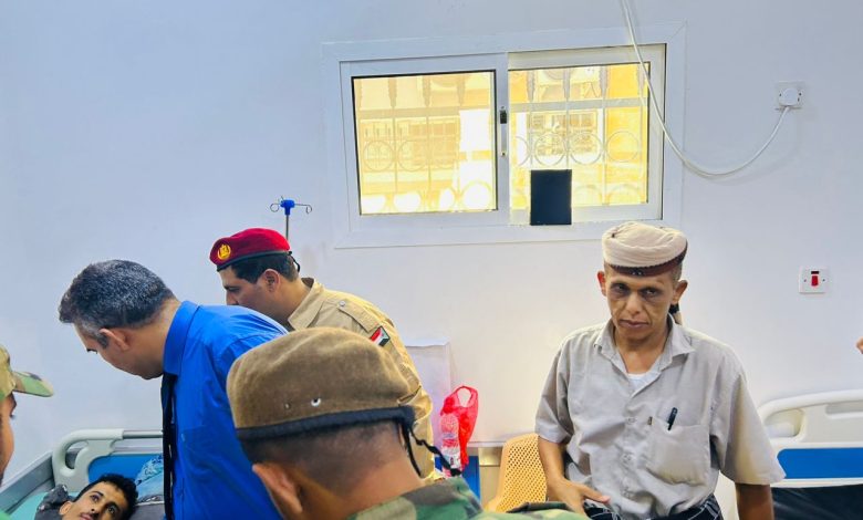 الوكيل الجنيدي يزور قائد كتيبة الطوارئ في المنطقة الوسطى النقيب عبدالعزيز الحنشي المرقد بمستشفى عبود العسكري