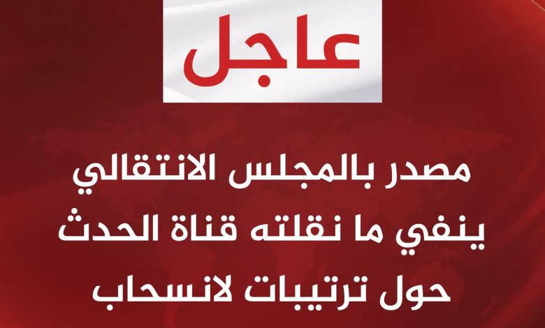 عاجل: المجلس الانتقالي الجنوبي ينفي ما نقلته قناة الحدث حول ترتيبات لانسحاب القوات المسلحة الجنوبية من حضرموت
