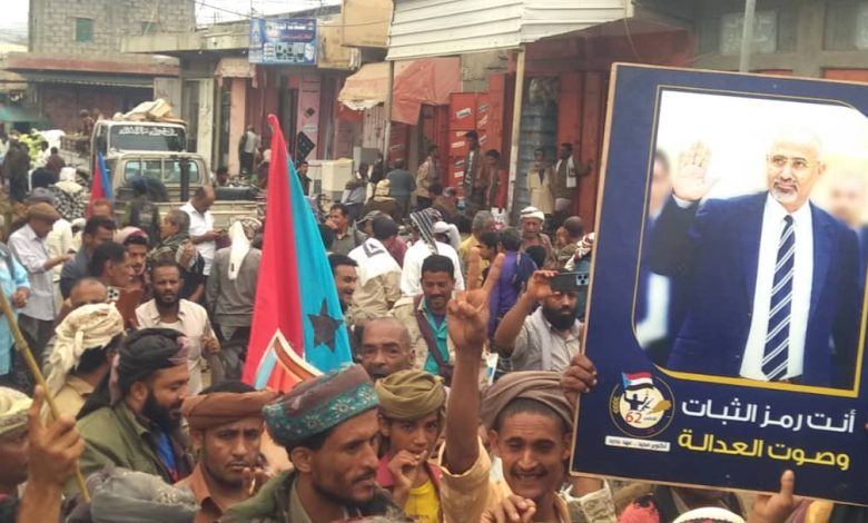 وأكد المشاركون في المسيرة وقوفهم الكامل خلف الرئيس القائد عيدروس بن قاسم الزُبيدي، ومطالبته بإعلان الدولة الجنوبية وتحقيق أهدافهم المنشودة والمشروعة ، باعتباره الممثل الشرعي لإرادة شعب الجنوب