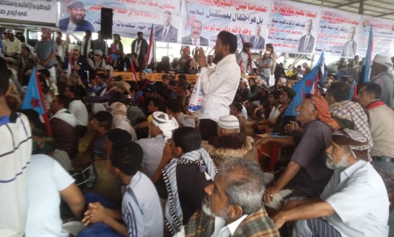 ساحة الاعتصام في أبين تشهد لحمة وطنيه بين أبناء يافع وأبناء الدلتا والساحل