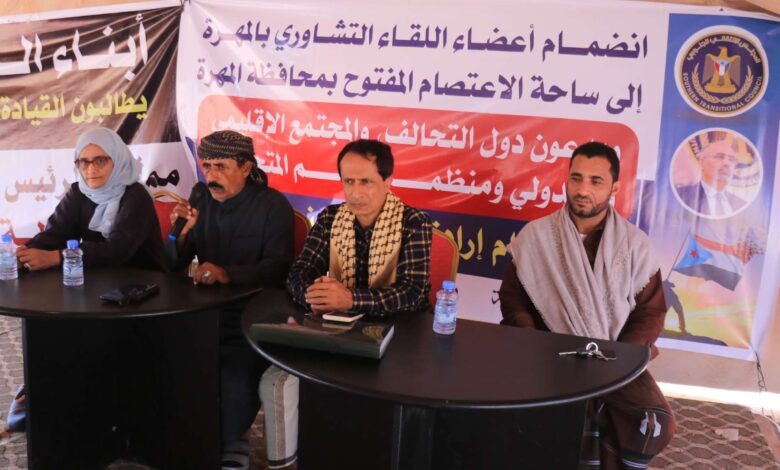 ساحة الاعتصام بالمهرة تحتضن لقاءً موسعًا لدعم الحوار الجنوبي واستعادة الدولة