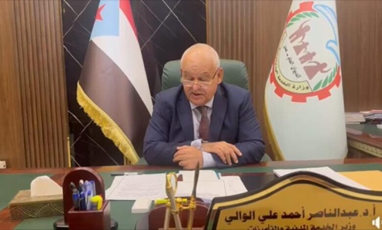 تصريح هام لوزير الخدمة المدنية والتأمينات يعلن التأييد لقرارات القيادة الجنوبية