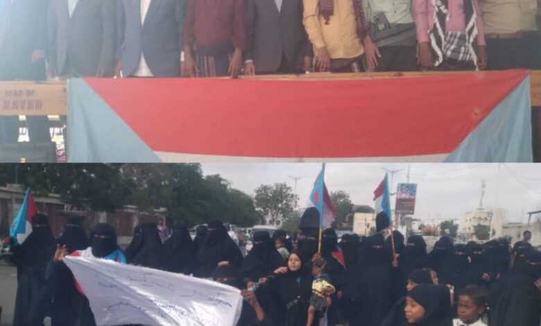 وسجل الحضور النسائي حضورًا لافتًا إلى جانب الرجال والشباب والفتيان، في لوحة وطنية تعكس وحدة الصف الجنوبي والتفافه حول قضيته. وانطلقت المسيرة من شارع جولة القدس باتجاه مخيم الاعتصام، حيث أقيمت فعالية خطابية بدأت بتلاوة آيات من الذكر الحكيم،وتلا ذلك وقوف الجميع اجلالا للنشيد الوطني الجنوبي