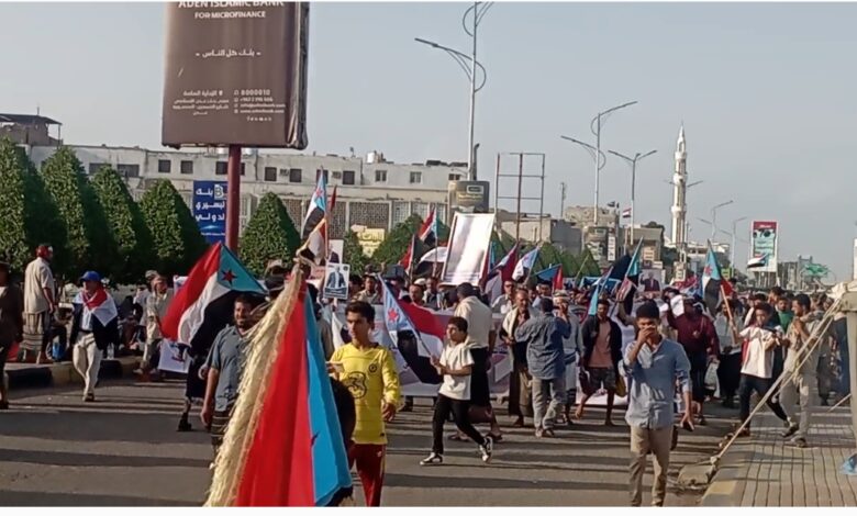 وفود مديرية البريقة تنضم بكثافة إلى ساحة الاعتصام في عدن للمطالبة بإعلان قيام الدولة الجنوبية