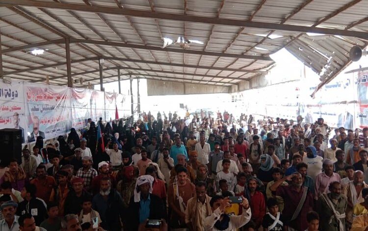 توافد أبناء مديريتي خنفر وزنجبار لساحة الاعتصام بزنجبار