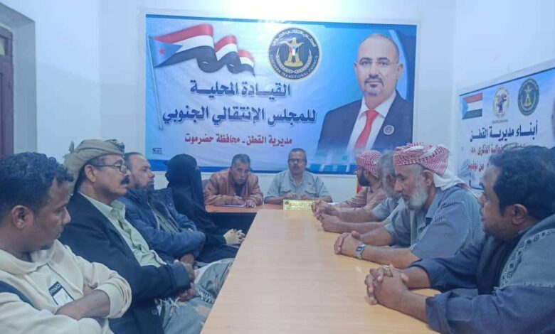 عقدت الهيئة التنفيذية للقيادة المحلية للمجلس الانتقالي الجنوبي في مديرية القطن بمحافظة حضرموت، اليوم الأربعاء، اجتماعها الدوري لشهر ديسمبر، برئاسة رئيس الهيئة، محمد حسين الحداد.