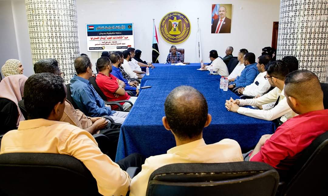 نظمت الأمانة العامة لهيئة رئاسة المجلس الانتقالي الجنوبي، اليوم الأحد في العاصمة عدن، حلقة تثقيفية بعنوان ” ثروات الجنوب والصراع عليها منذ 1919″ لكافة منتسبي دوائر الأمانة العامة.