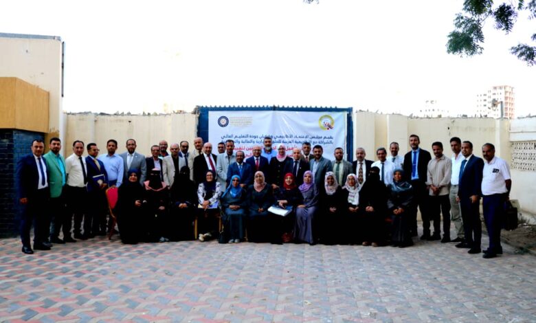 اختتم مجلس الاعتماد الأكاديمي وضمان جودة التعليم العالي بالشراكة مع الأكاديمية العربية للعلوم الإدارية والمالية والمصرفية ظهر اليوم بالعاصمة عدن دورة اعداد وتأهيل المراجعين الخارجيين لتقييم برامج مؤسسات التعليم العالي والتي استمرت من 20 – 25 ديسمبر 2025 م بمشاركة حوالي 33 اكاديميا من مختلف الجامعات في المحافظات .